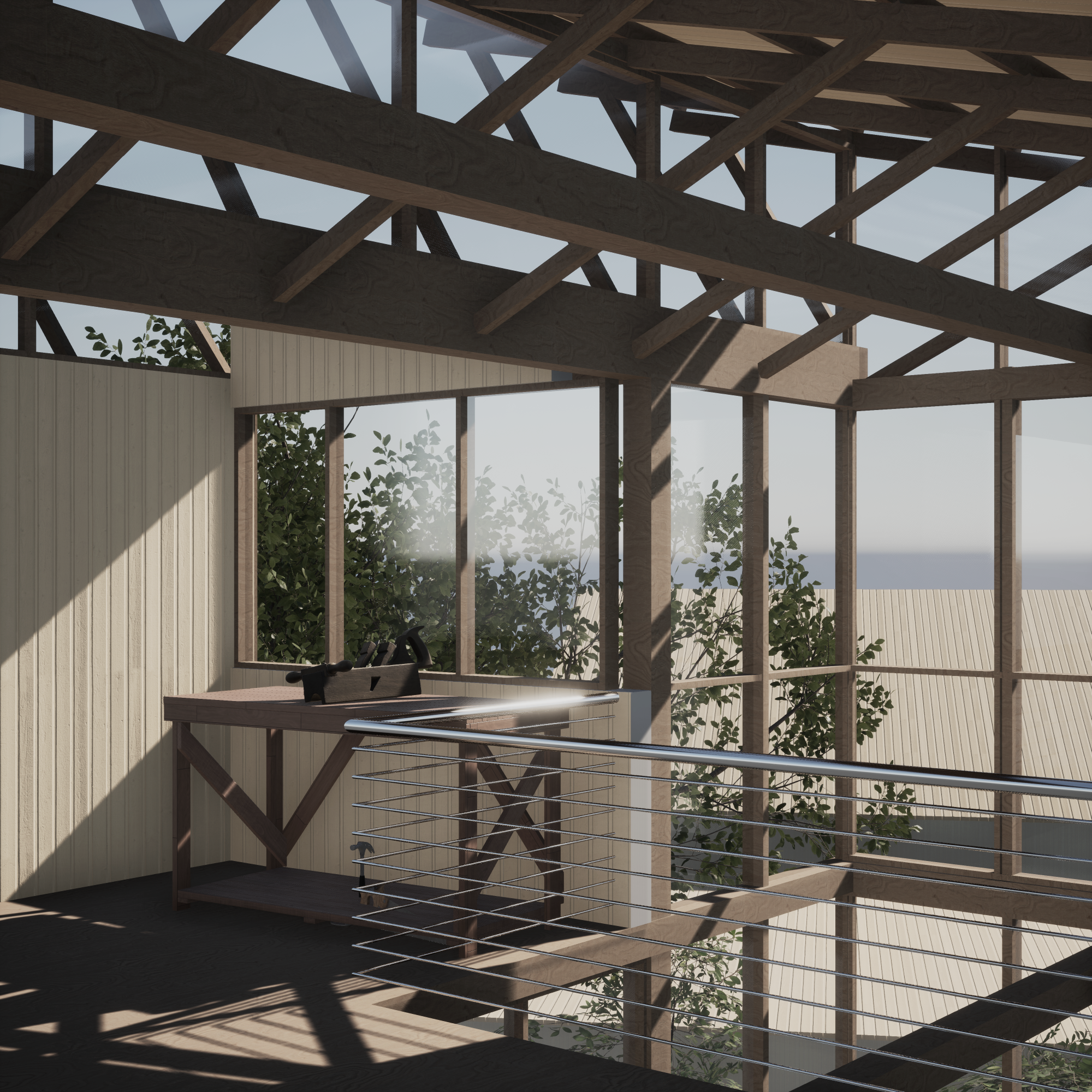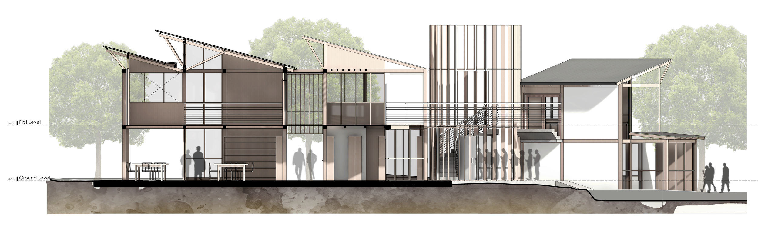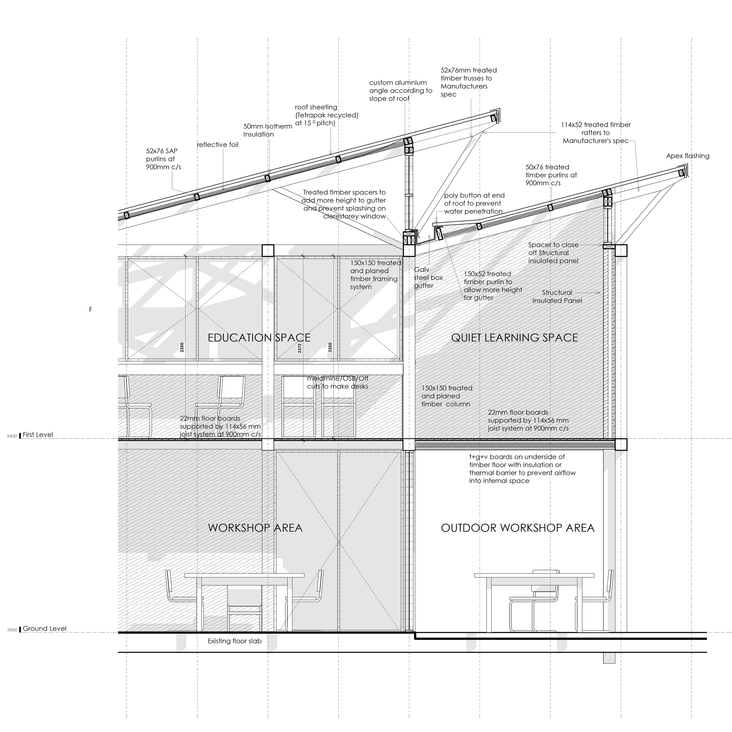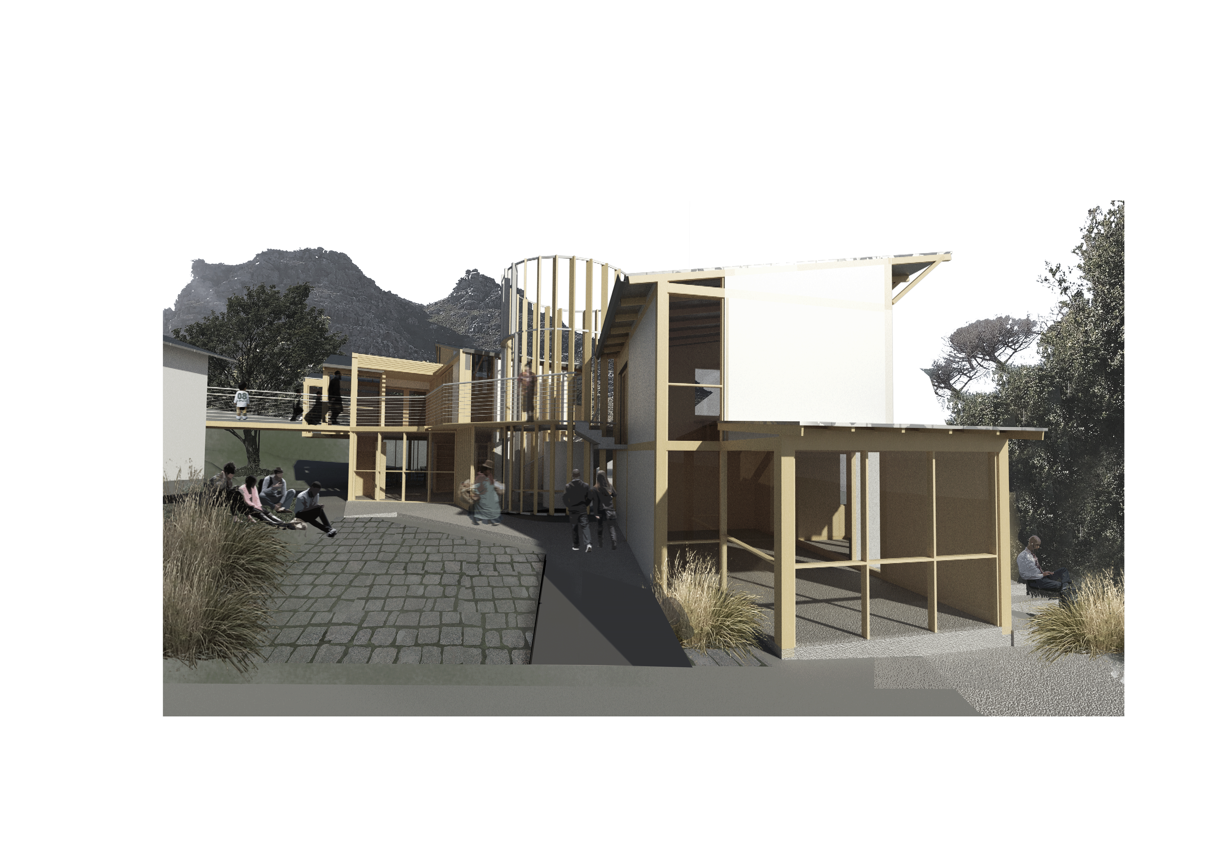 Autoconstruction of informal dwellingsThis project develops a solution to the accessibility of materials in Imizamo Yethu by promoting the use of Structural Insulated Panels (SIPs) for the autoconstruction of homes in informal settlements. The proposed building consists of a carpentry workshop and vocational training space where these panels can be built, stored and sold to make safe and comfortable homes accessible to the community.