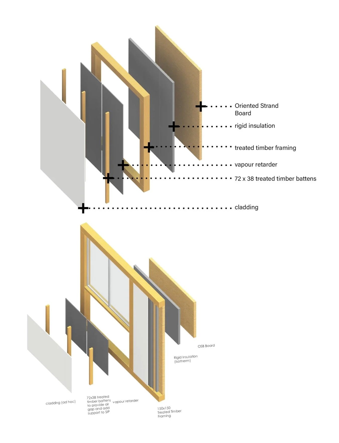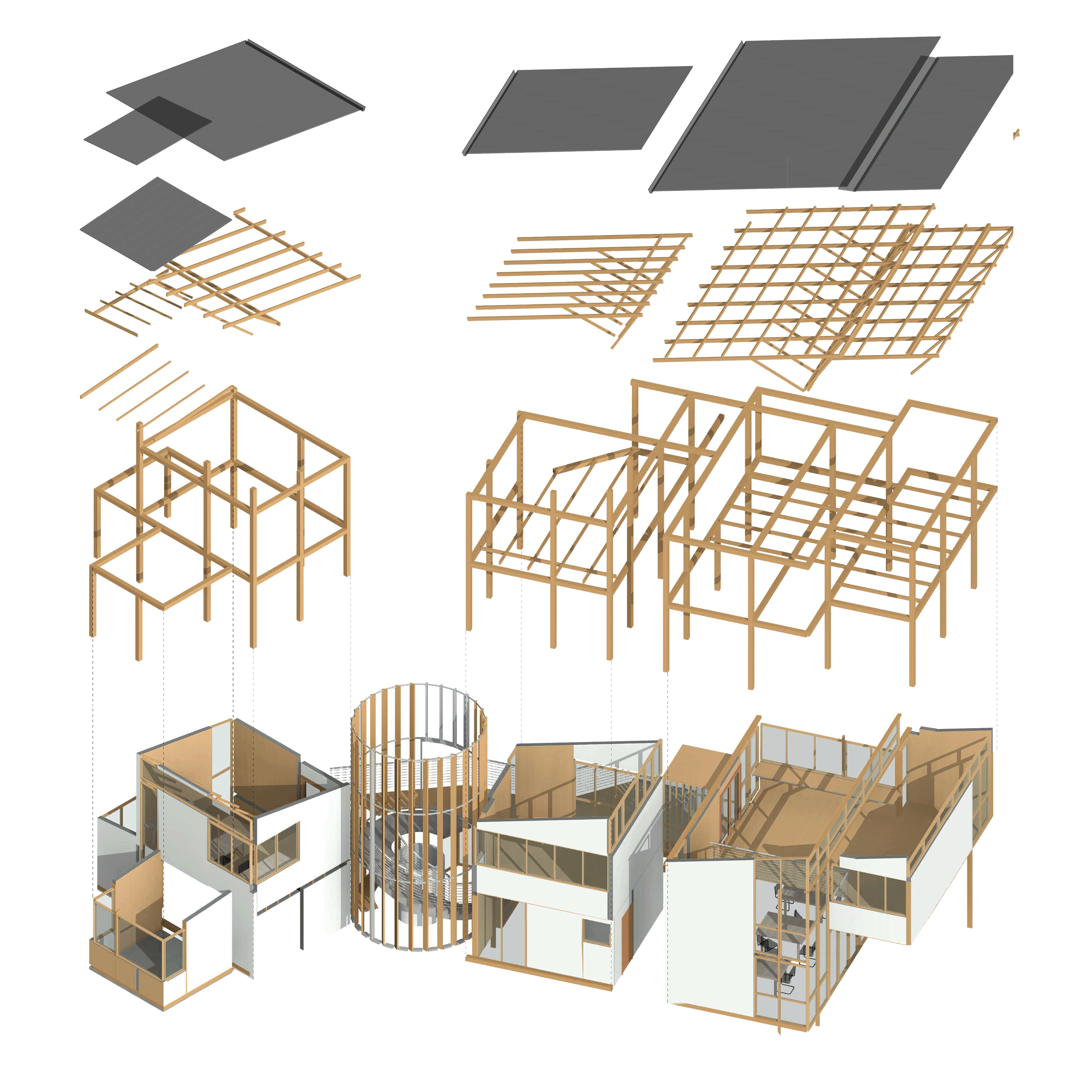 Location: Imizamo Yethu, Cape Town, RSAProgram: Vocational Centre, workshop and hardware storeType: Individual design project (3 weeks)Level: BAS Hons semester 1Supervisor: Michael Louw (michael.louw@uct.ac.za)Description: My elective studio was “Studio Glocal”, where students were briefed to explore the tensions that exist between global and localized ways of designing and making architecture in Africa. Themes included collage as a method, the appropriate use of sustainable technology, the use of local materials and labour, skill-building, the incorporation of memory, identity, and the concept of hybridity. The studio focused on prototyping, interpretation, and the implementation of a set of replicable design strategies by appropriate technologiesResidents of Imizamo Yethu, an informal settlement, build shack houses out of discarded materials such as corrugated iron and timber offcuts. However, these materials do not adequately keep rain or cold winds out and are prone to fire and water damage. This project develops a solution to the accessibility of materials in Imizamo Yethu by promoting the use of Structural Insulated Panels (SIPs) for the autoconstruction of homes in informal settlements.