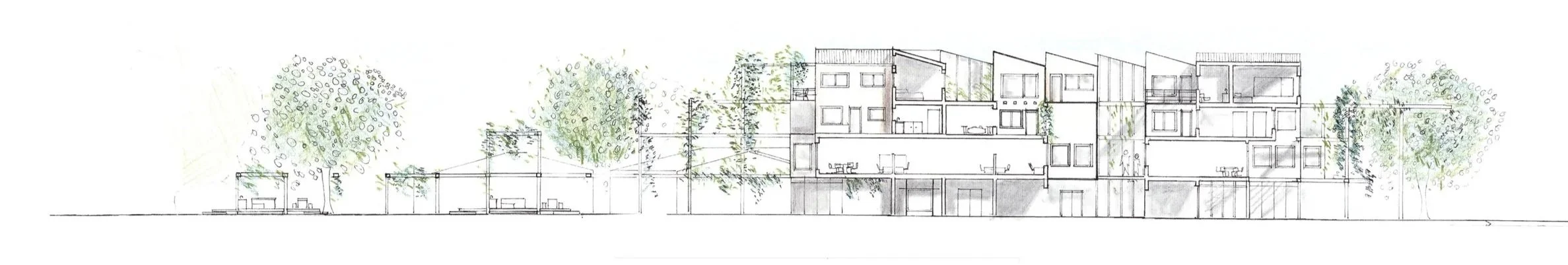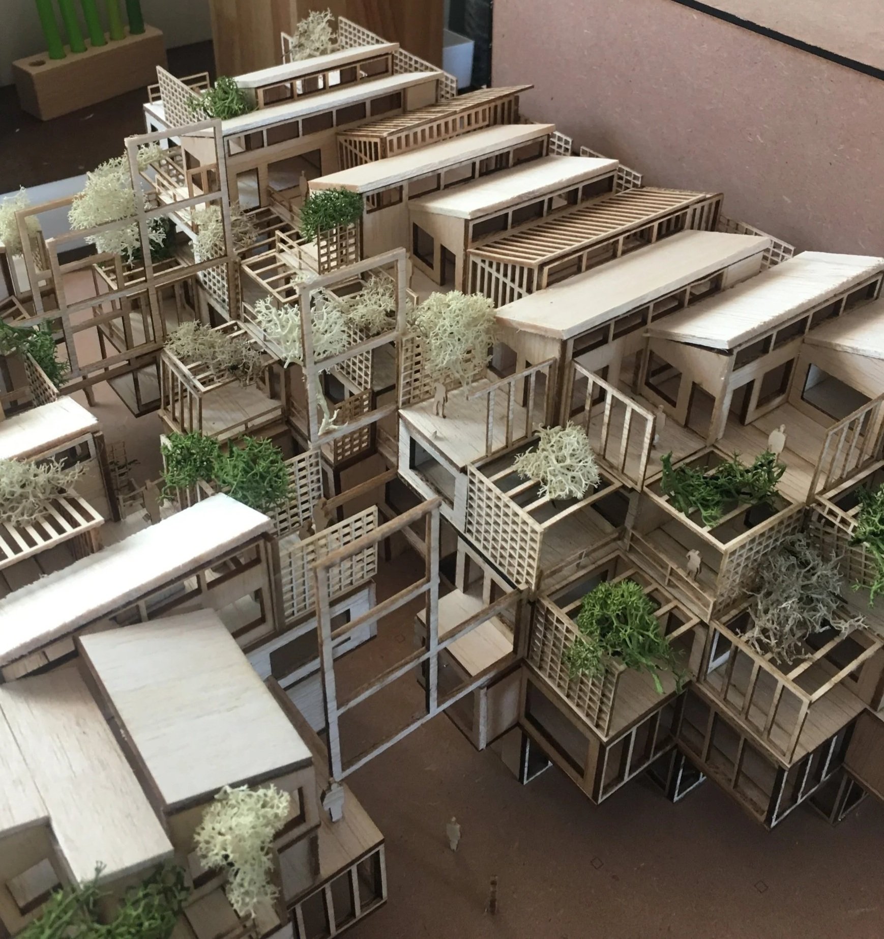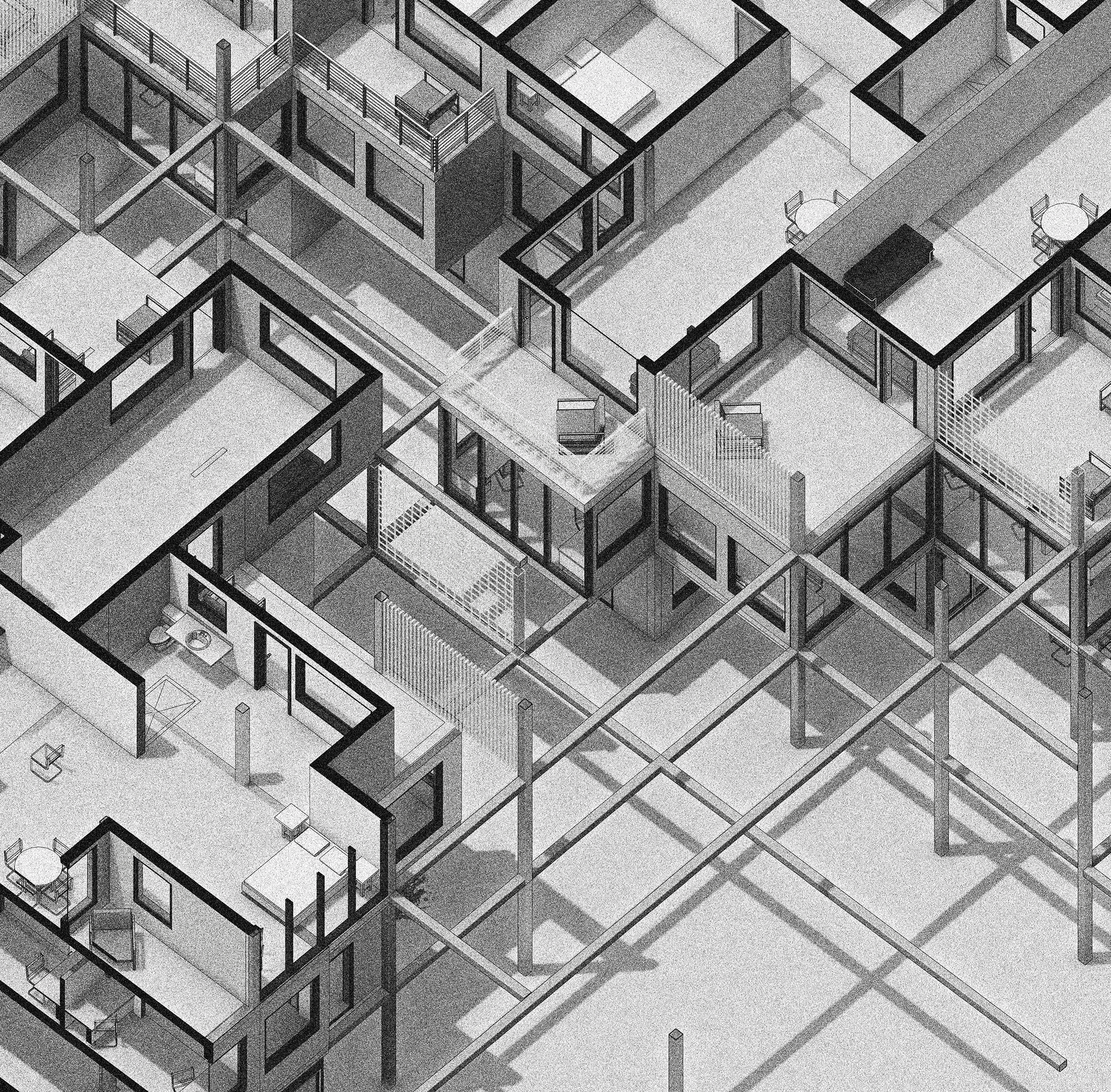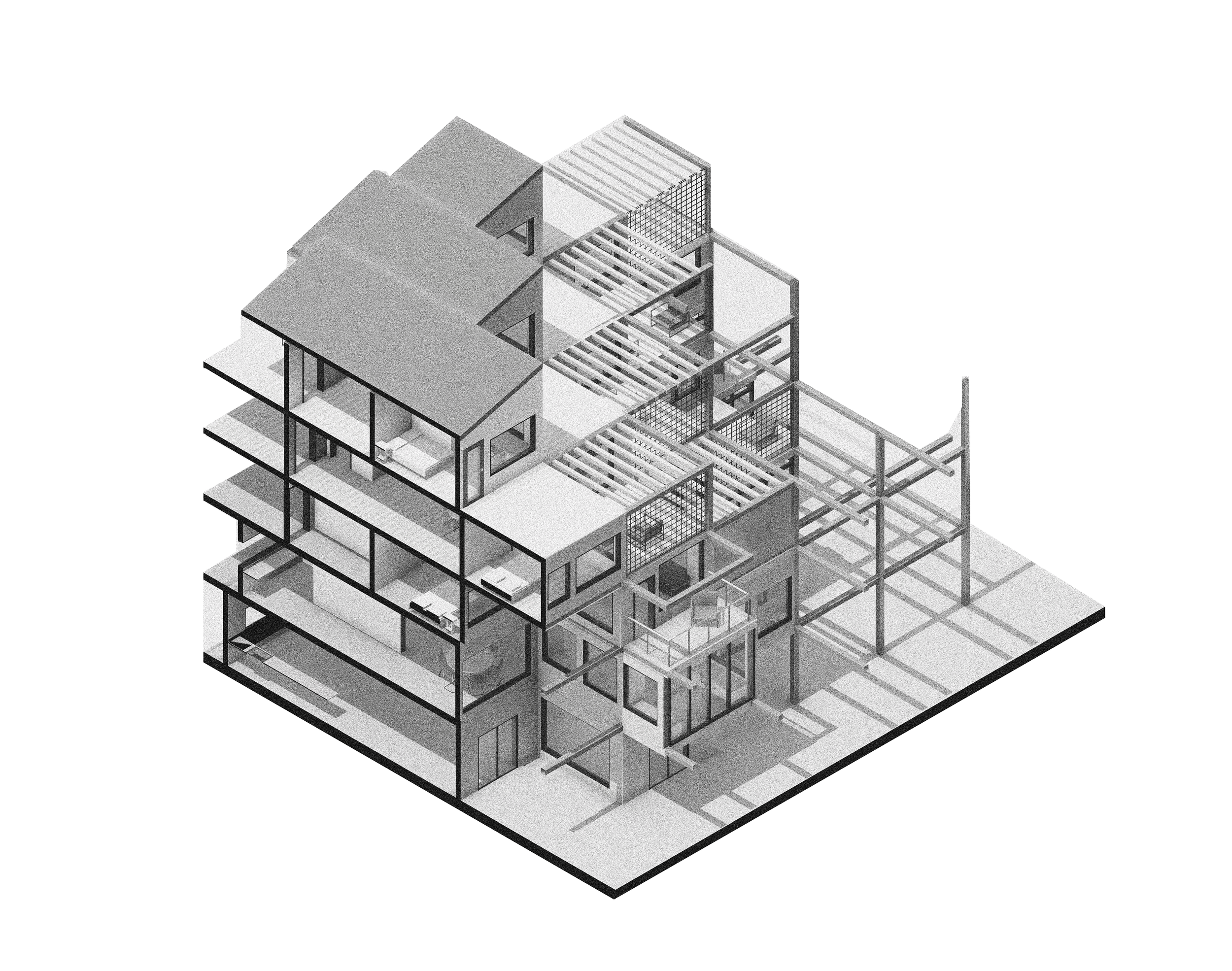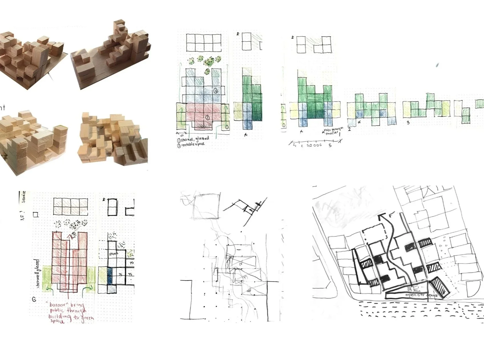 This project investigates the accomodation of affordable housing with mixed-use developments in Cape Town, where both formal and informal trade sectors are accounted for. The proposal explores the material potential of modular design and cross-laminated timber technology to provide a sustainable approach to inner-city building developments in the South African context. The design was developed through model building and sketching. The outcome of this process is a modular terraced structure to create a form that would maximise light in all units of the building. The building is also split in two parts to create a walk through-market space as well as to optimise light gains towards the centre of the building. The grid-like layout informs the circulation and structural elements of the building.