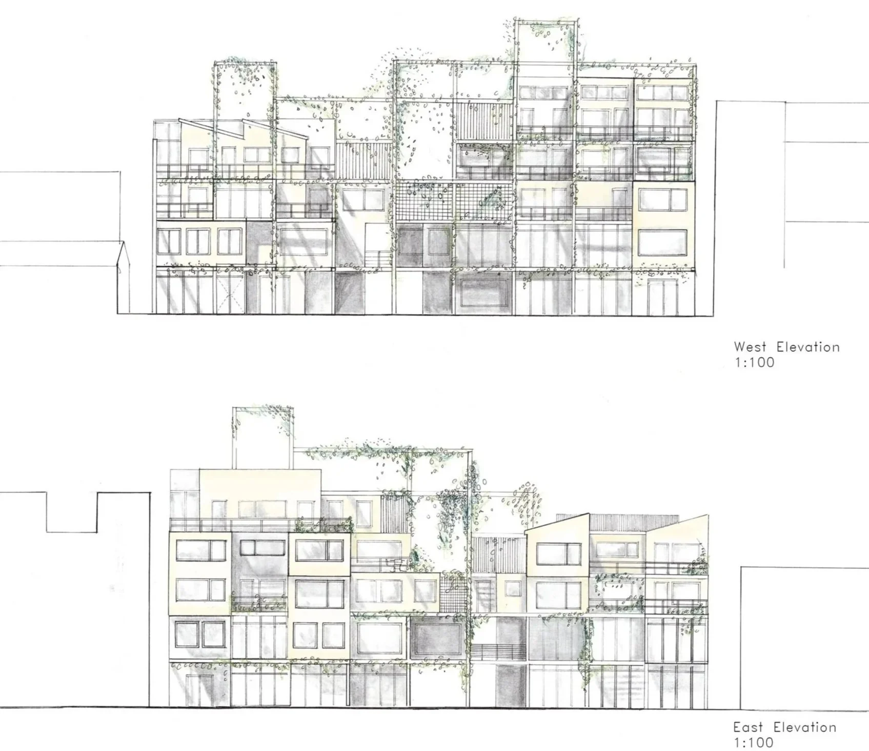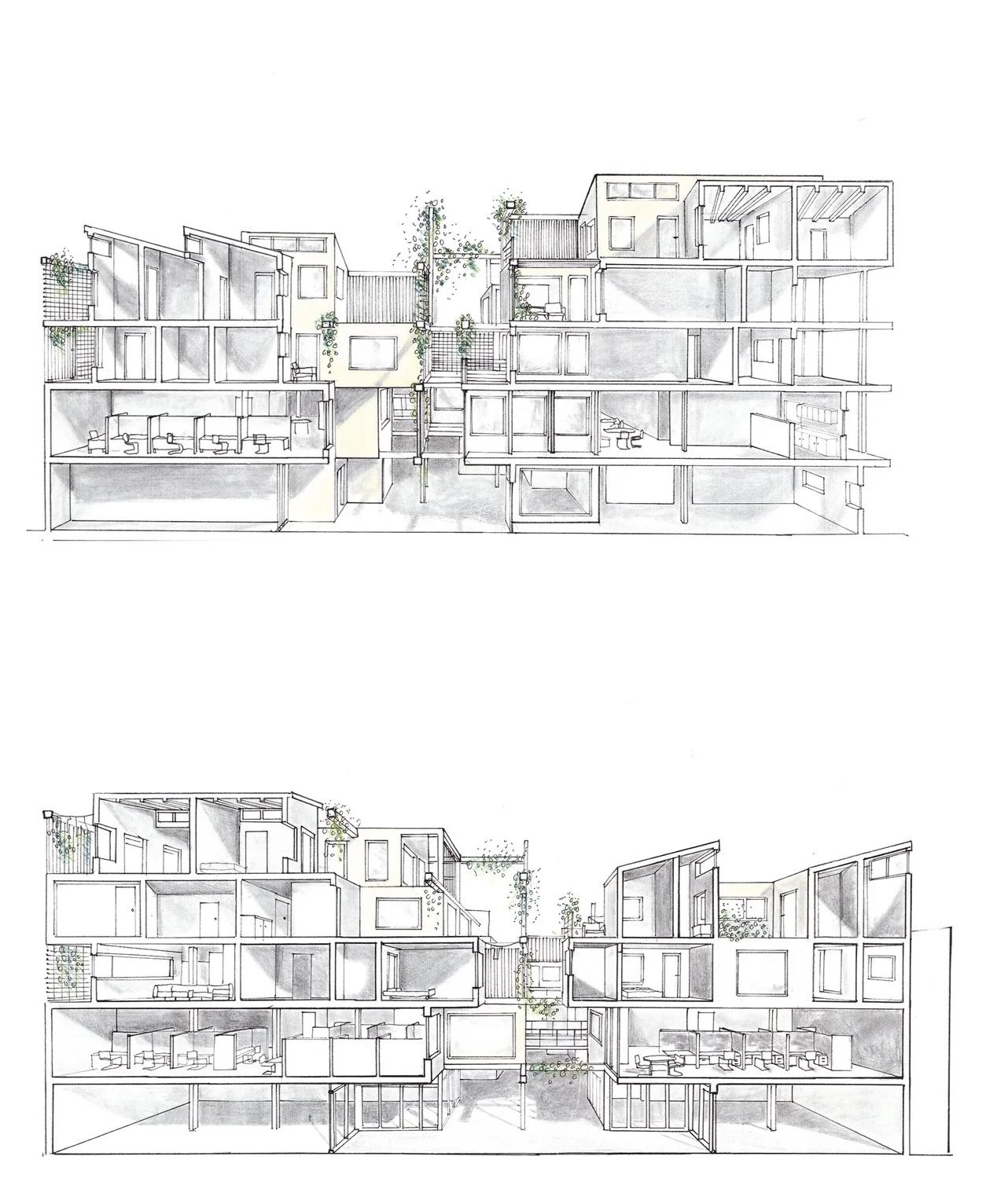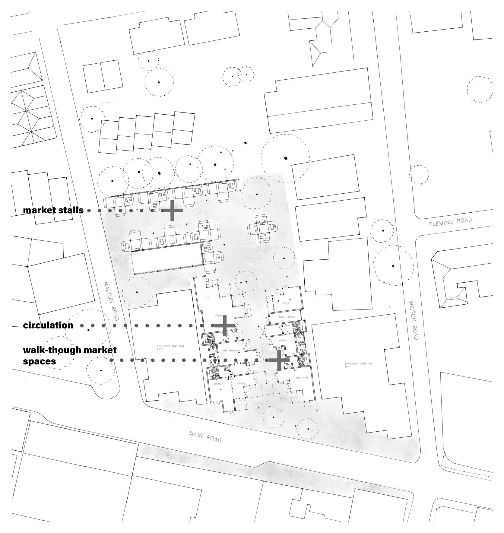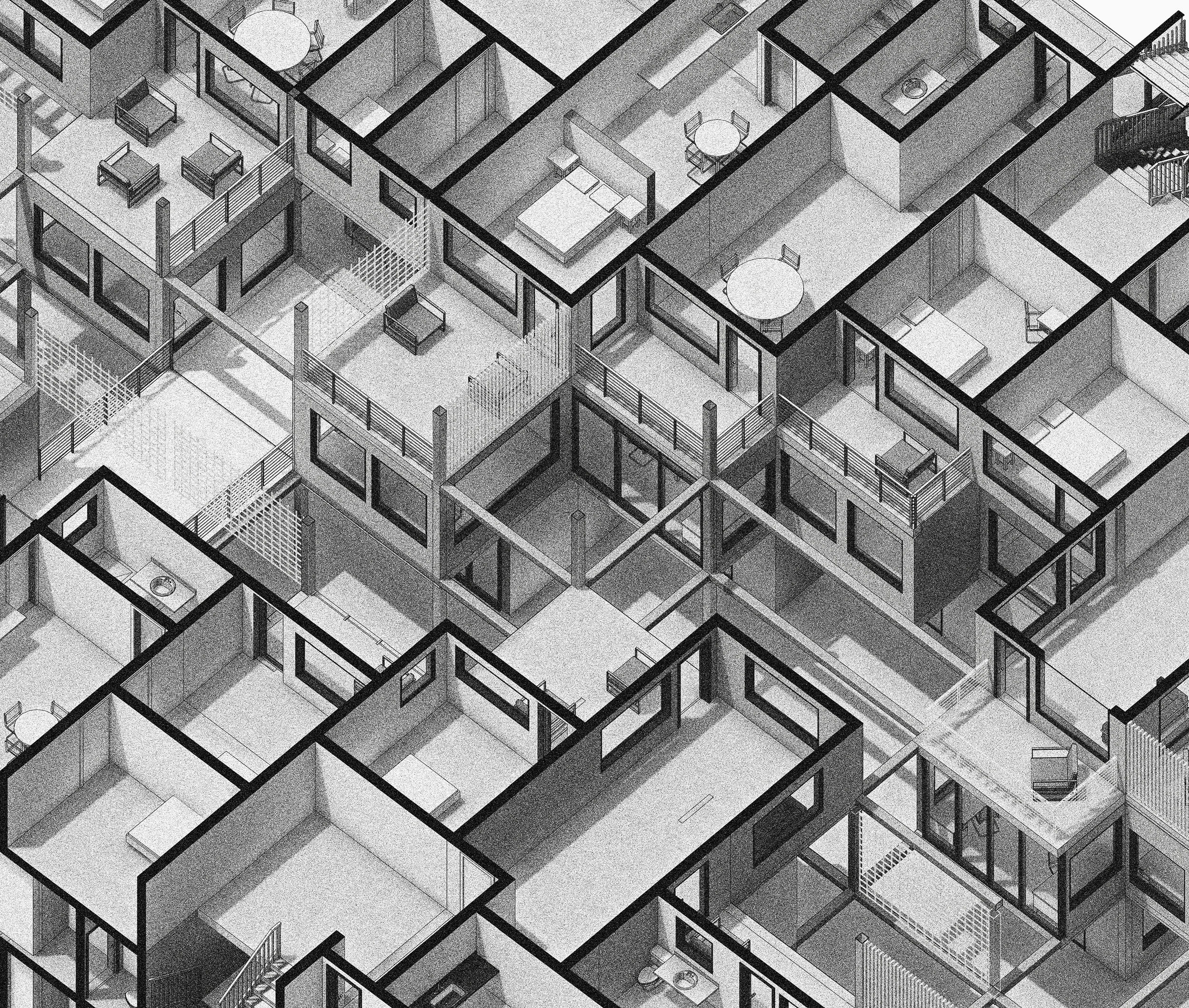 This project investigates the accomodation of affordable housing with mixed-use developments in Cape Town, where both formal and informal trade sectors are accounted for. The proposal explores the material potential of modular design and cross-laminated timber technology to provide a sustainable approach to inner-city building developments in the South African context. The design was developed through model building and sketching. The outcome of this process is a modular terraced structure to create a form that would maximise light in all units of the building. The building is also split in two parts to create a walk through-market space as well as to optimise light gains towards the centre of the building. The grid-like layout informs the circulation and structural elements of the building.