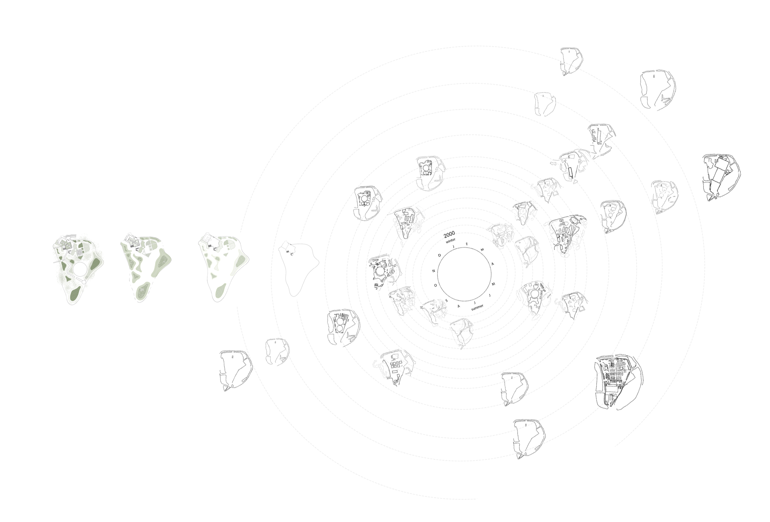 Cities are never still, so architecture shouldn’t be static. In Casa de Campo, time and temporality become tools for play and exploration. Structures act as portals or follies in the landscape—acupuncture points that spark curiosity, invite events, and guide people toward unexpected encounters with nature, history, and each other.This project asks: How can architecture mediate between the ephemeral and the permanent? How can it shape evolving patterns of human and ecological life?The design proposes a scattered network of interventions that turn constraints into opportunities. Hidden surfaces, forgotten histories, and overlooked spaces become triggers for discovery, transforming the park into a living playground for experience and connection.This project deepened my understanding of landscape as a living, temporal system. It taught me to read subtle site cues—cracks, informal paths, vegetation—as layers of meaning and opportunity. Designing for transformation rather than completion reshaped how I think about permanence in architecture. Casa de Campo became an exploration of rhythm and temporality, with architecture and its actors participating in the landscape’s ongoing evolution.