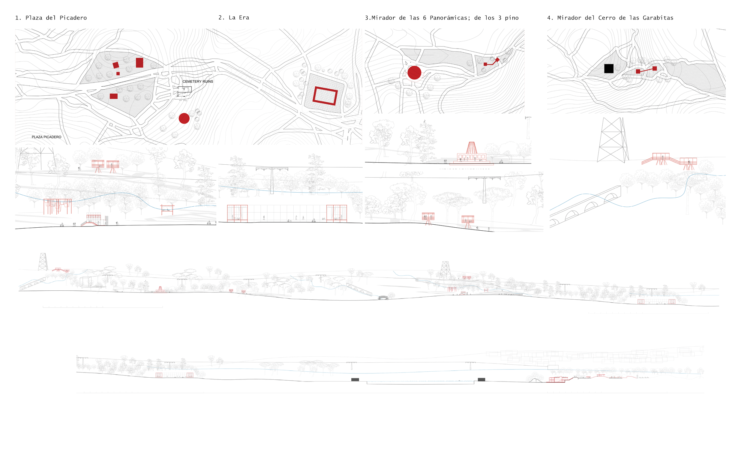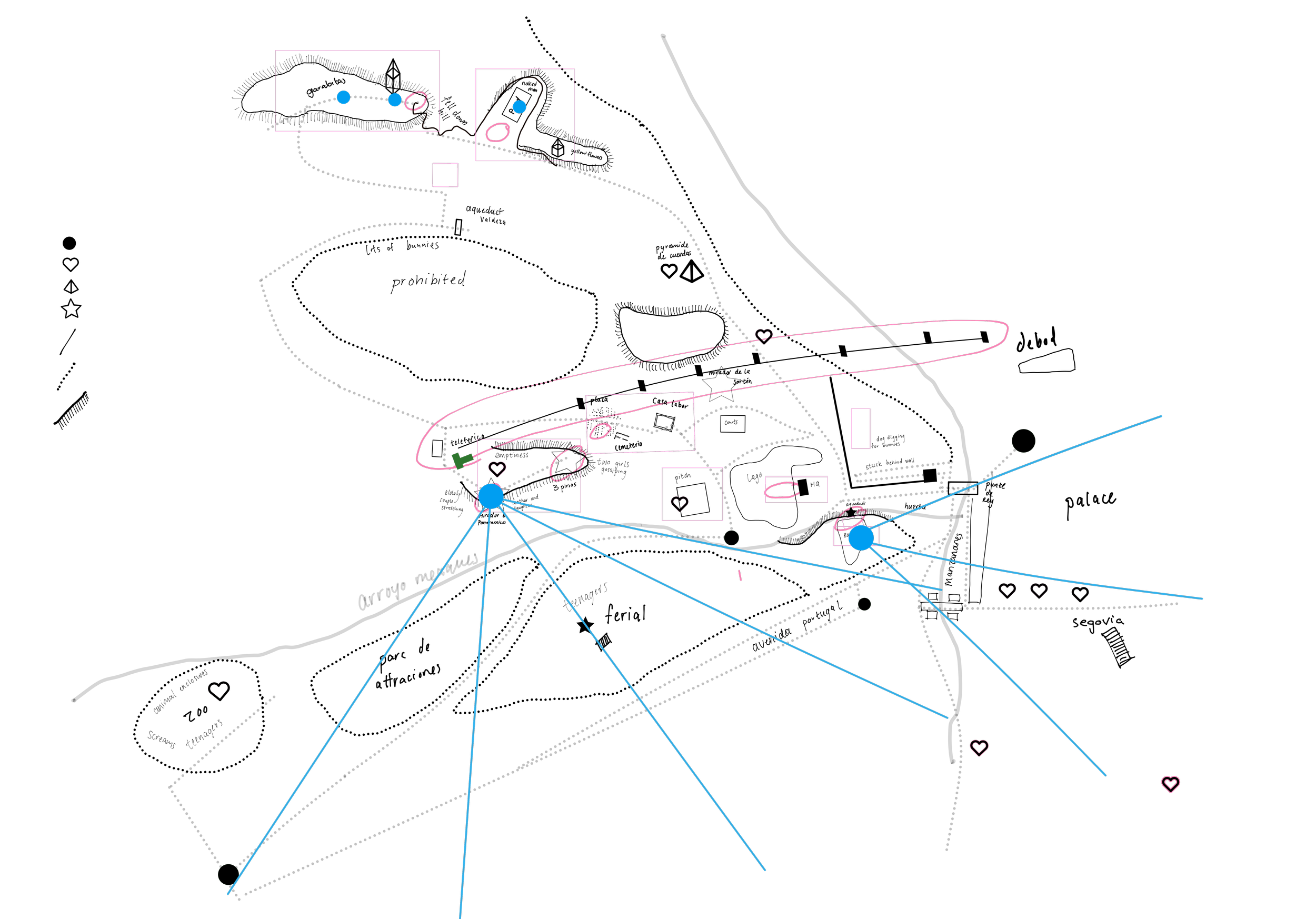 My design approach treated Casa de Campo as a large field of connected elements. Through mapping, I identified acupuncture sites for their views, accessibility, ecological value, or historical artefacts that could serve as activators. The project orchestrated a dispersed network of small elements: shaded rest stops, ‘miradoro’, floating bridges, and revalorised paths. Together, these scattered interventions work as an urban strategy to stitch the park with the city, attract more diverse use, and balance the rhythms of public life with the slower cycles of ecological regeneration. All the while, creating moments of surprise and adventure. In this way, the design operates at both the scale of the detail and the territory.
